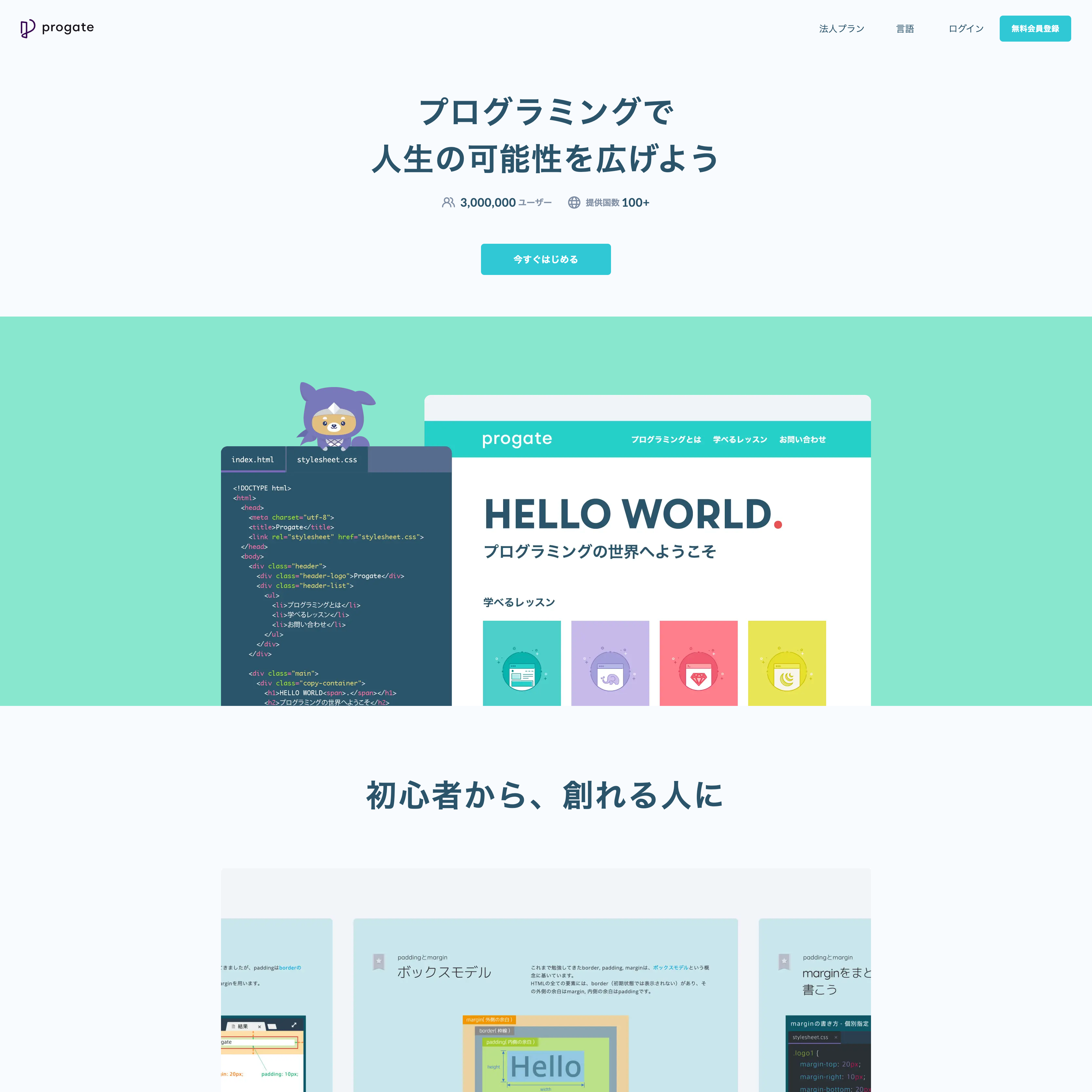 Coding helperはプログラミングの楽しさを知ってもらいたいという思いから誕生したサイトです。このWEBサイトではプログラミングを使って何ができるのかをはじめ、プログラミングを体験したり、プログラミングの学習方法などを紹介したり、プログラミングの楽しさについて知ってもらう要素が詰まっています。皆さんもぜひ、このサイトを通してプログラミングに興味を持って、自分の思い描いたものを自分の好きなように作れる楽しさを味わってください。